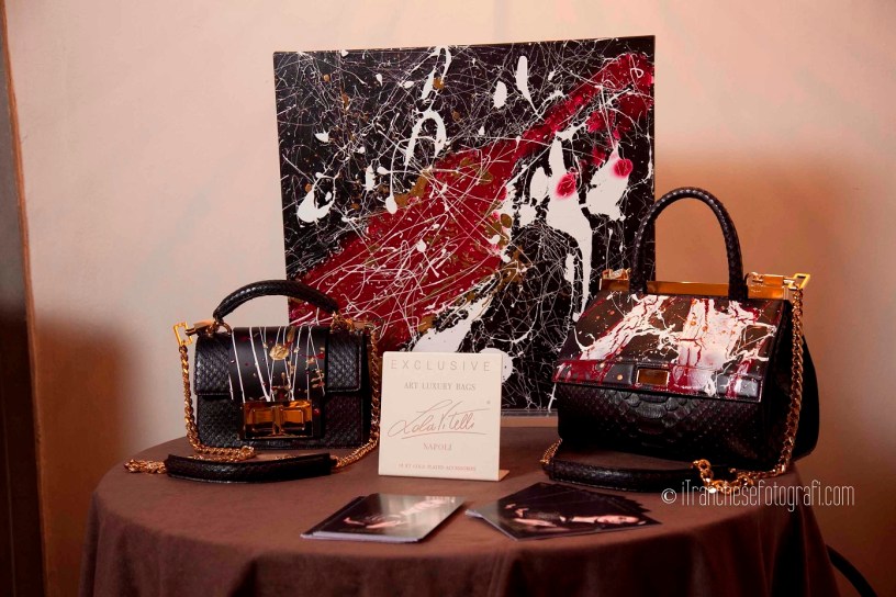 Tra questi Lola Vitelli, una delle voci d’artista più originali del mondo dell’arte in Italia, che ha presentato un suo progetto inedito sull’accessorio borsa sospeso sul filo dell’arte. L’artista coerente su un percorso di ricerca fra unicità della forma e modernità del materiale, è mossa dalla curiosità che la stimola a cercare concetti nuovi, non banali, forme, una sofisticazione che porta alla manualità originale, infatti Lola Vitelli crea elementi – la borsa da donna – che hanno, come elemento diversificatore per offrire all’utente finale un prodotto unico, arte pura abbinata al pellame, flash di emozioni d’arte per aprire una strada nuova, unica e originale, per una elevata qualità del prodotto.