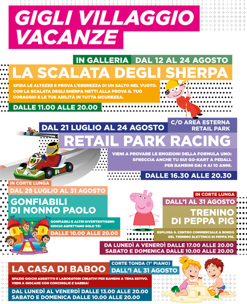 Ad Agosto c’è “Gigli Villaggio Vacanze” – Al centro commerciale tante iniziative per i più piccoli