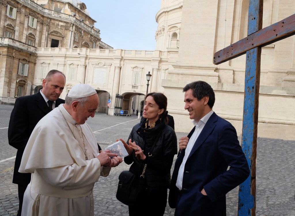 Nel luglio 2013, quando Papa Francesco è andato in visita sull’isola, l’artigiano ha portato con sé tante piccole croci, e a notarle è stato Arnoldo Mosca Mondadori, fondatore della Casa dello spirito e delle arti e tra gli ideatori del progetto delle Croci, che racconta «Gli ho detto che avrebbe dovuto farne trecento, anche di più. Il legno dei barconi era intriso della sofferenza di quegli uomini, non poteva che essere il materiale più giusto per diventare una croce».