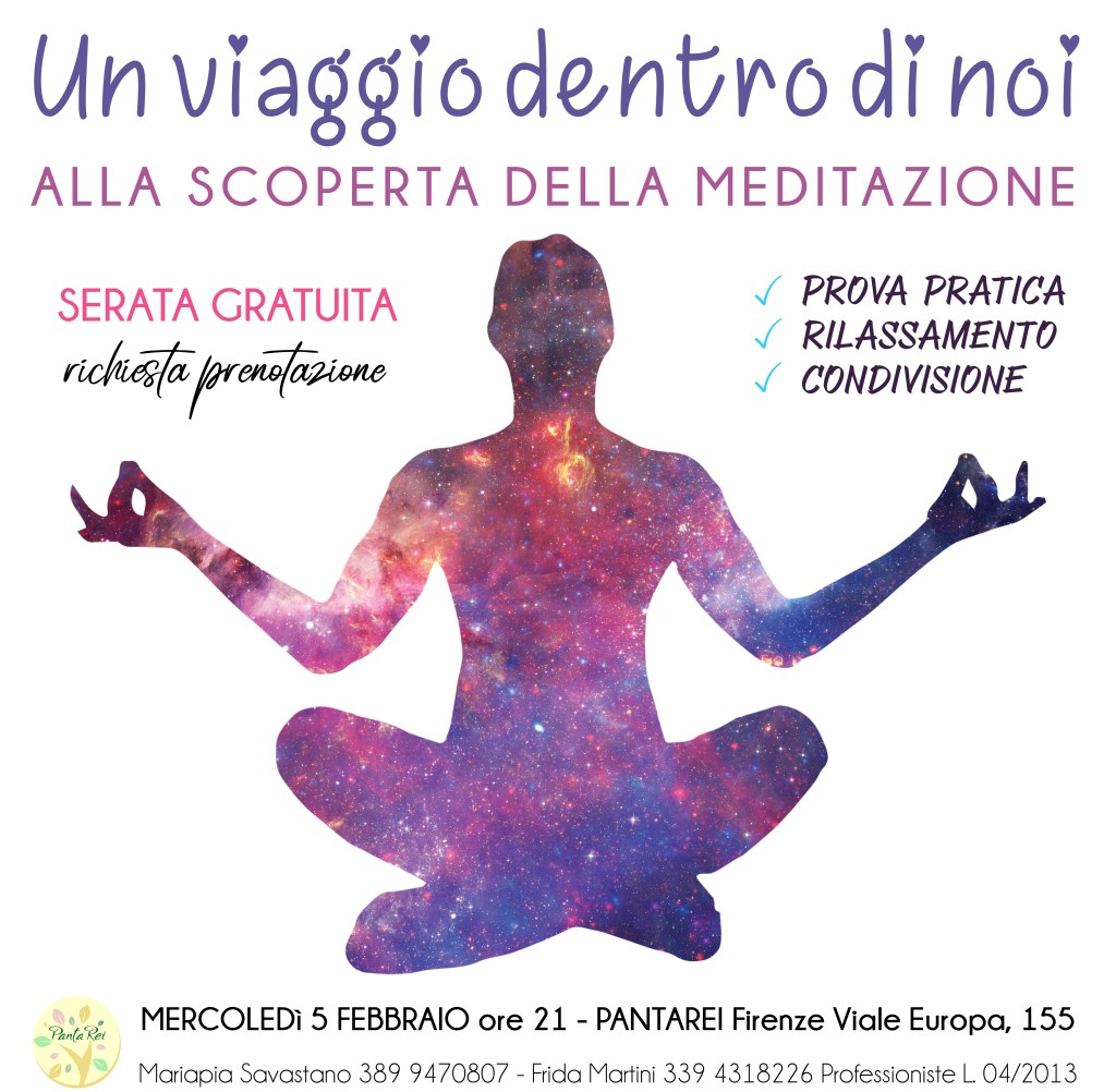 FIRENZE – Mercoledì  5 febbraio ore 21 presso Pantarei di Firenze, Viale Europa, 155 si svolgerà una serata gratuita, su prenotazione, dal titolo “Un viaggio dentro di noi”, alla scoperta della meditazione.
