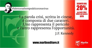 “La parola crisi, scritta in cinese, è composta di due caratteri. Uno rappresenta il pericolo e l’altro rappresenta l’opportunità”, ebbe modo di scrivere John Fitzgerald Kennedy. E se si è costretti in casa si moltiplicano i lettori, che finalmente hanno occasioni di lettura, più difficili con i ritmi frenetici di solo un mese fa.La lettura e i libri diventano un bene primario, ma, a differenza dei produttori di altri beni primari che, in questo periodo ne alzano i prezzi, c’è chi i prezzi li abbassa.Una grande occasione la mette in campo la Marlin, la casa editrice di Tommaso e Sante Avagliano che, nell’ambito della campagna #LaLetturaAlTempoDelCoronavirus, offre tutti i suoi libri con uno sconto del 20%, con due limitazioni, però: questa promozione varrà fino al 5 aprile e, per usufruire dello sconto, i lettori dovranno acquistarli dal sito dell’editore, www.marlineditore.it.I titoli tra cui è possibile scegliere sono davvero tantissimi, da quelli del catalogo storico, ai grandi classici come l’intrigante “Una strana tribù” di John Hemingway, da cui emerge un ritratto a tinte forti del nonno Ernest; a thriller d’autore, come “L’ospite maligno” dello scrittore irlandese Joseph Sheridan Le Fanu, fino ai best sellers dell’ultimo periodo: “L’uomo elettromagnetico”, del medico scrittore Vincenzo D. Esposito; “Il mio nome è Maria Maddalena”, il coraggioso e sorprendente romanzo di Roberta Trucco; “Gli ultimi giorni del Comandante Plinio”, di Alessandro Luciano; “Il canto del castrato”, di Giovanna Mozzillo; “La felicità economica” di Maria Luisa Visione, “Lascia fare al destino”, di Vittorio Schiraldi, e tanti altri. Tutti in un’offerta eccezionale, solo fino al 5 aprile, solo su www.marlineditore.it.