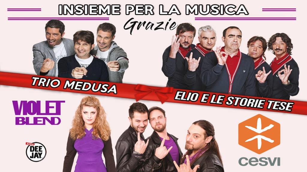Il Trio Medusa, Elio e le Storie Tese e Cesvi sono scesi in campo in soccorso delle band indipendenti meritevoli duramente colpite dalla pandemia e dal lockdown, attivando una campagna di crowdfunding. In palio un aperitivo in compagnia del Trio Medusa ed un’esibizione degli Elii per un unico grande evento, fondamentale inoltre il sostegno da parte di Cesvi, organizzazione umanitaria bergamasca attiva da 35 anni e oggi impegnata nella lotta al Covid-19 in Italia.