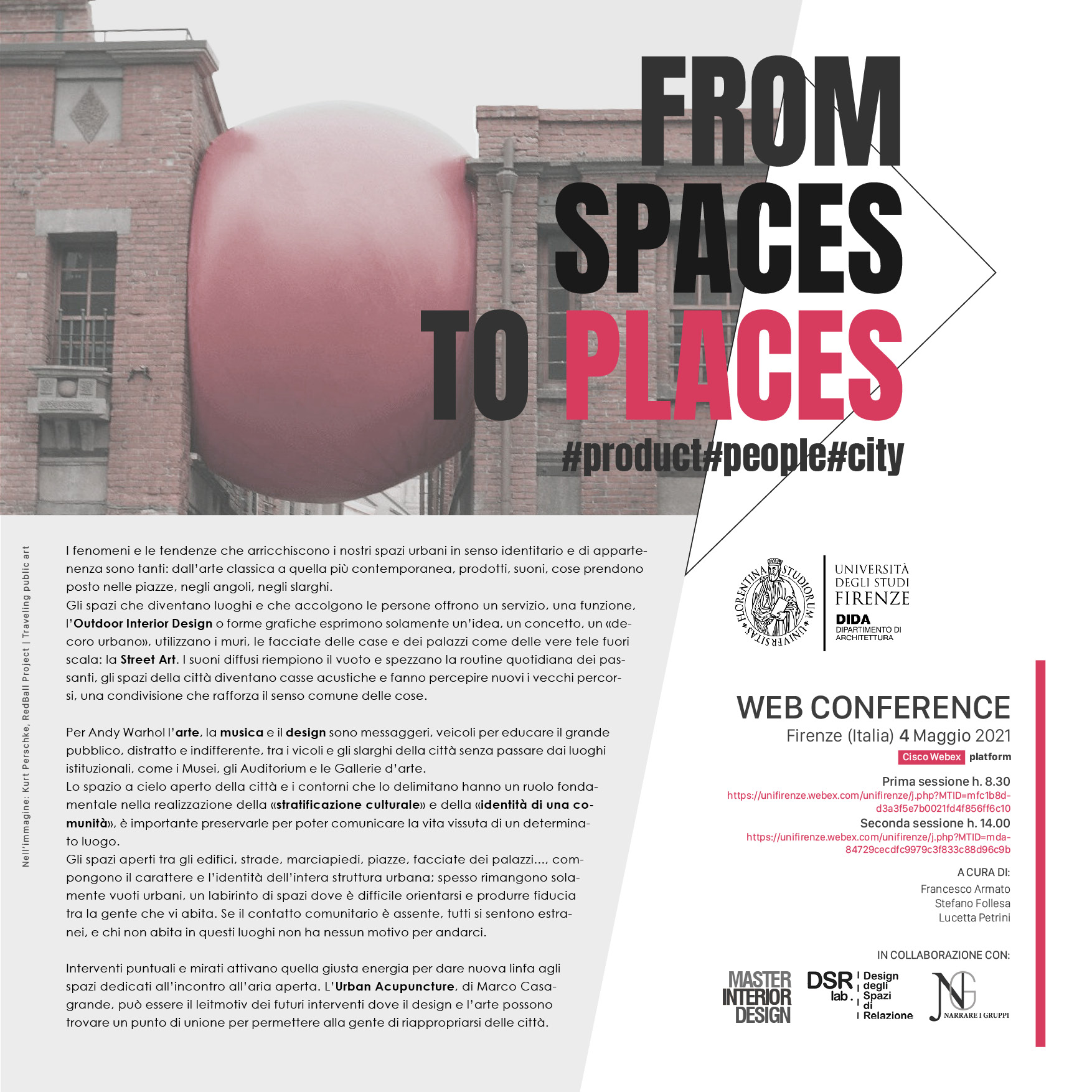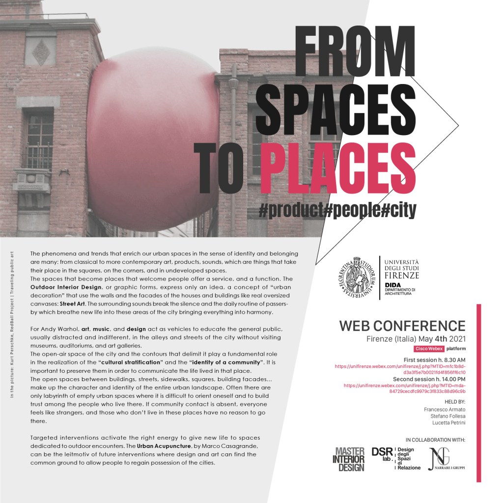 Gli spazi che diventano luoghi e che accolgono le persone offrono un servizio, una funzione, l’Outdoor Interior Design o forme grafiche esprimono solamente un’idea, un concetto, un «decoro urbano», utilizzano i muri, le facciate delle case e dei palazzi come delle vere tele fuori scala: la Street Art. I suoni diffusi riempiono il vuoto e spezzano la routine quotidiana dei passanti, gli spazi della città diventano casse acustiche e fanno percepire nuovi i vecchi percorsi, una condivisione che rafforza il senso comune delle cose.