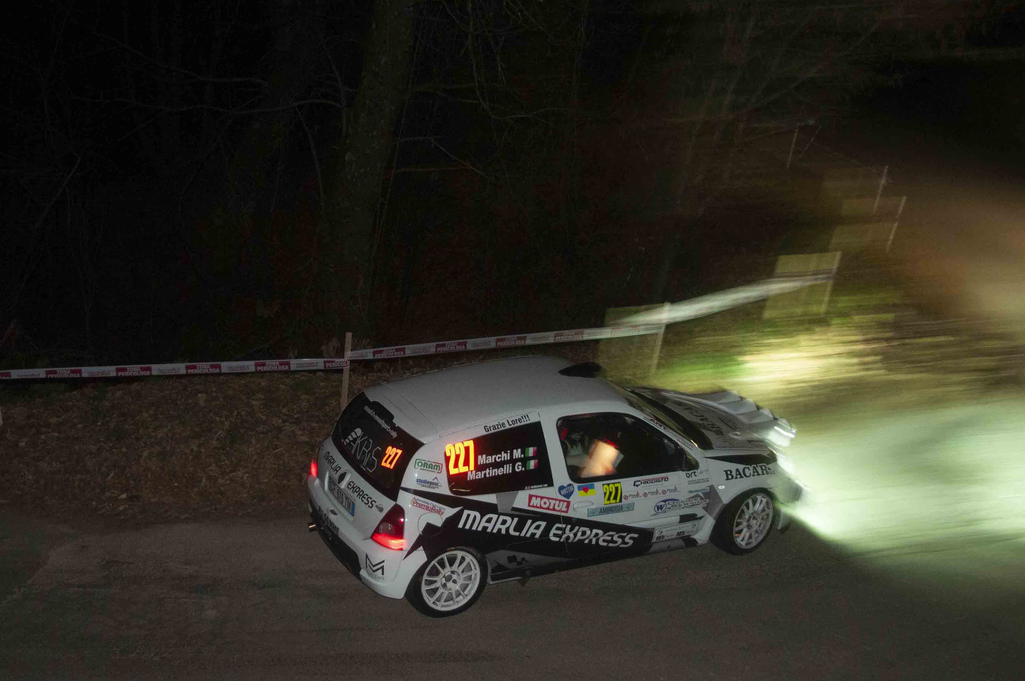 Gara da dimenticare, invece, per Michele Marchi e Gianluca Martinelli, al via con la Renault Clio RS N3. Autori del miglior tempo di classe e gruppo sulla PS1, nella prova seguente il duo lucchese ha patito una foratura, costringendolo ad un non preventivato pit stop che lo ha affossato in classifica. Nella seconda parte di gara, dopo altri due scratch di gruppo, una toccata sulla PS6 li ha definitivamente tolti di scena.