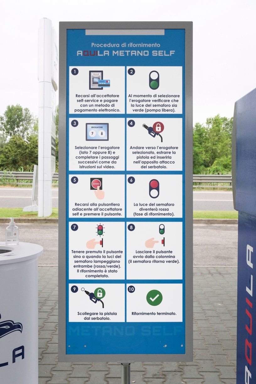 Ad oggi il self per il distributore di metano è molto raro a livello nazionale ma Aquila Energie ha deciso di intraprendere questa strada offrendo un’ulteriore opzione anche ai possessori di auto a metano.