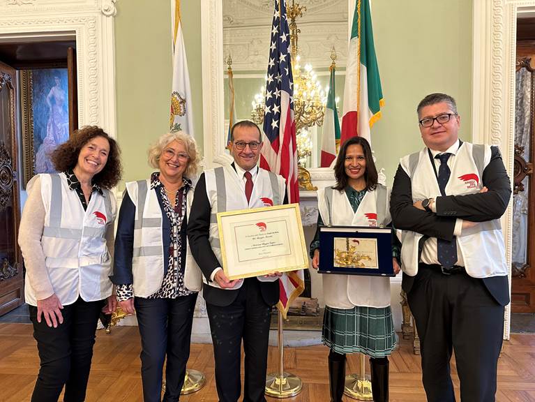 Il Consiglio di Amministrazione degli Angeli del Bello, rappresentato dal Presidente Giorgio Moretti e dal Consigliere Paolo Salvadeo, unitamente ad Alessandra Zecchi, responsabile operativa, e ad Anna Maria d’Angelo, volontaria, hanno consegnato alla Console Generale USA Ragini Gupta, in una breve cerimonia tenutasi presso il Consolato Americano in Firenze, un attestato ed una targa celebrativa per suggellare il simbolico ingresso degli Stati Uniti d’America quali soci onorari della Fondazione che ha a cuore, tra gli altri, progetti di riqualificazione e recupero di aree urbane ed extraurbane degradate o deturpate da azioni vandaliche (scritte su muri o monumenti).