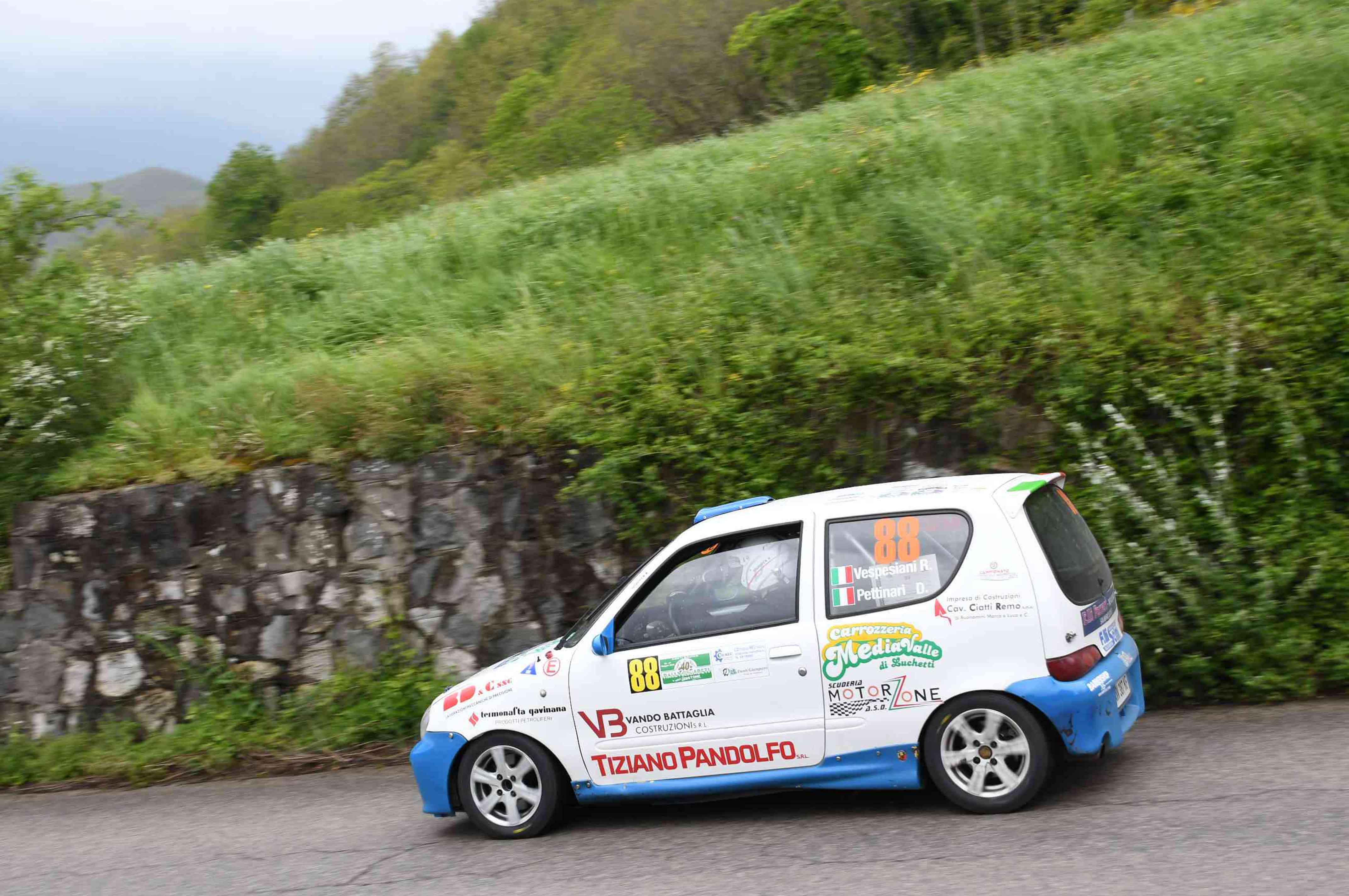 Finale amaro per Riccardo Vespesiani, che non è riuscito a vedere il traguardo, tradito dalla rottura di un semiasse sulla Fiat 600 Kit A0. Il pilota di Popiglio, che per il suo rally di casa era affiancato, per la prima volta, da Daniele Pettinari, aveva messo in campo una prestazione gagliarda, soprattutto nella prima tappa, dove si era ben difeso sul bagnato, condizione mai affrontata prima di questa gara, stazionando con decisione al terzo posto di classe, fino appunto alla rottura meccanica che ne ha sancito il ritiro.