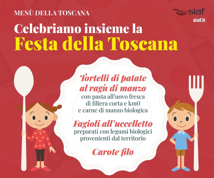 Questa settimana, a partire da oggi martedì 25 novembre, Siaf celebra la Festa della Toscana proponendo un menù speciale ispirato ai sapori della tradizione regionale, con particolare attenzione alla filiera corta e agli ingredienti biologici. L’iniziativa coinvolgerà tutte le scuole gestite dall’azienda.